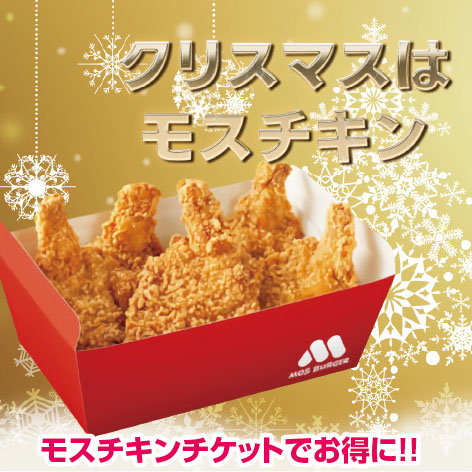 年末に向けて色々な行事などが増える季節。そこで食べたくなるのがモスチキン!サクサクの衣にジューシーなチキンが食欲を誘う。モスチキンチケット購入なら100円の割引券がついてくるのでお得だよ!