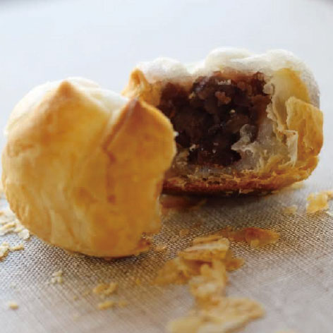 餡餅をパイで包んで焼き上げたサクサクもちもちのおもちのきもち好評発売中!毎日何度も焼き立てをお出ししている「おもちのきもち」是非店頭で熱いうちに食べてしまおう。 お土産としても大人気☆予約はおひとつから可能。